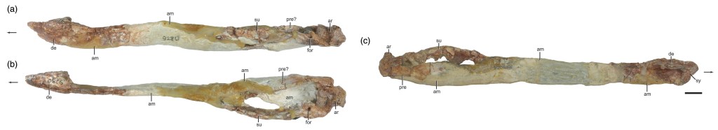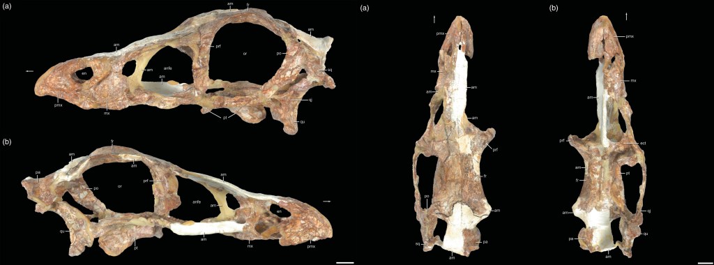 Références : Nesbitt, S.J.; Chatterjee, S., 2024, The osteology of Shuvosaurus inexpectatus, a shuvosaurid pseudosuchian from the Upper Triassic Post Quarry, Dockum Group of Texas, USA. The Anatomical Record.