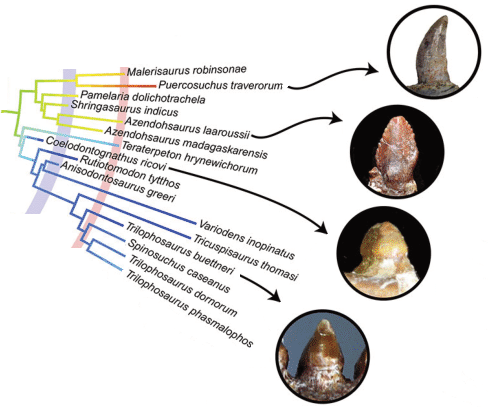 Sengupta et ses collègues analysent également la diversité morphologique des dents des archosauromorphes. Ils constatent que les malerisaurinés (Malerisaurus et Puercosuchus) possèdent des dents recourbées avec des denticules, caractéristiques des prédateurs carnivores. Cela contraste avec les azendohsauridés non-malerisaurinés qui possèdent des dents foliodontes semblables à celles des dinosaures sauropodomorphes ou à celles de certains silesauridés. Les dents de Malerisaurus robinsonae suggèrent donc que c’était un prédateur de petits vertébrés.
