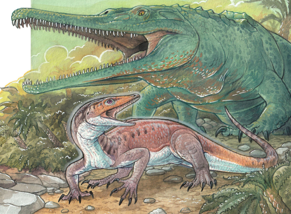 Chatterjee, S., 1980, Malerisaurus, a new eosuchian from the late Triassic of India. Philosophical Transactions of the Royal Society of London. Series B, Biological Sciences. 291: 163-200.