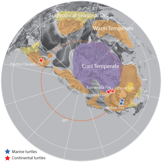 Dans le crétacé supérieur d’Amérique du Sud, les tortues sont une composante faunique qui est régulièrement présente mais toujours en petit nombre. Elles sont principalement représentées par les groupes des panchelidés et des bothremydidés. Dans le sud du continent, près du cercle polaire, les tortues découvertes sont encore plus rares, avec seulement des restes fragmentaires découverts. Sterli et ses collègues décrivent ainsi un nouveau spécimen de tortue découvert dans le Cénomanien de la formation géologique de Piedra Clavada (Santa Cruz, Argentine).