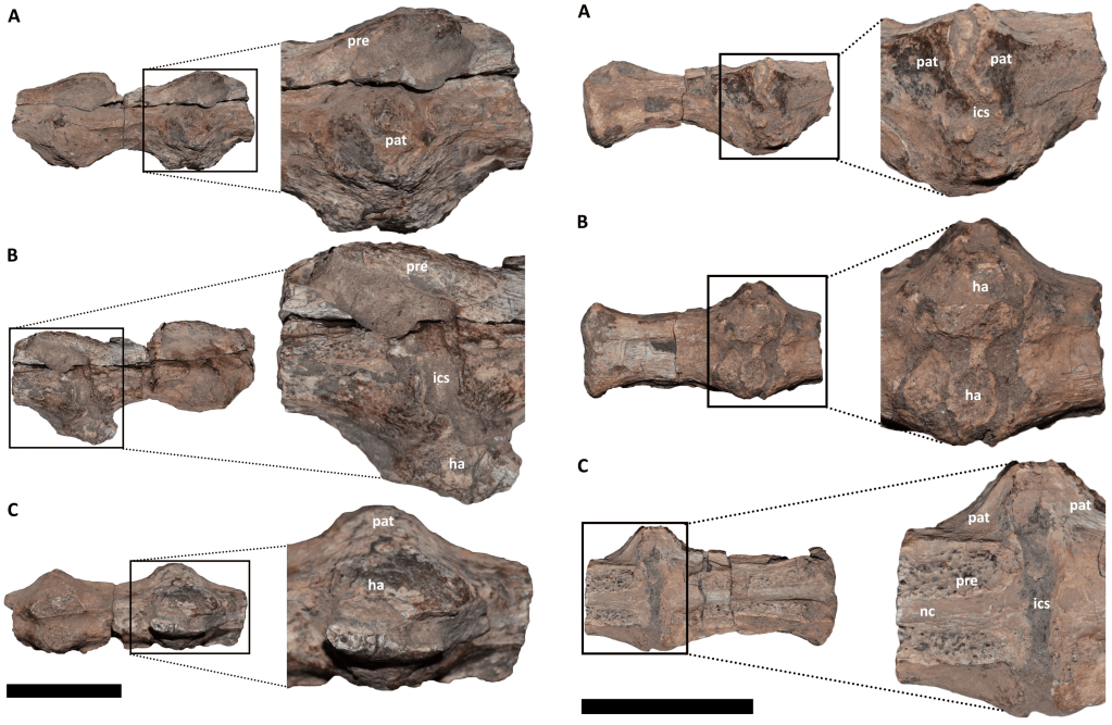 Référence : Baiano, M.A.; Cerda, I.A.; Bertozzo, F.; Pol, D., 2024, New information on paleopathologies in non-avian theropod dinosaurs: a case study on South American abelisaurids. BMC Ecology and Evolution. 24: 6.