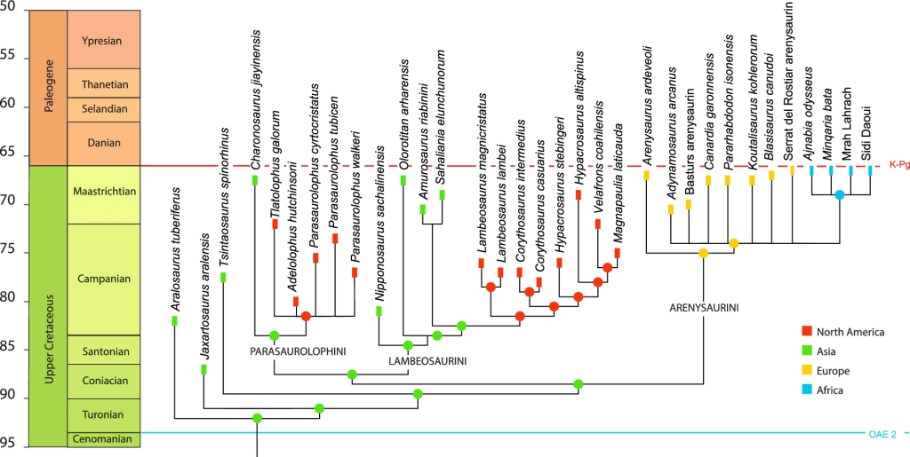 Référence : Longrich, N.R.; Pereda-Suberbiola, X.; Bardet, N.; Jalil, N.-E., 2024, A new small duckbilled dinosaur (Hadrosauridae: Lambeosaurinae) from Morocco and dinosaur diversity in the late Maastrichtian of North Africa. Science Reports. 14: 3665.