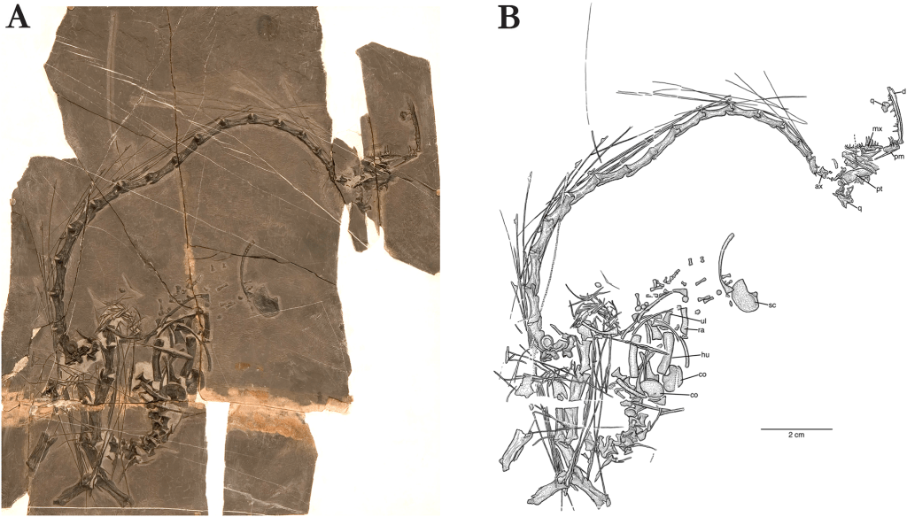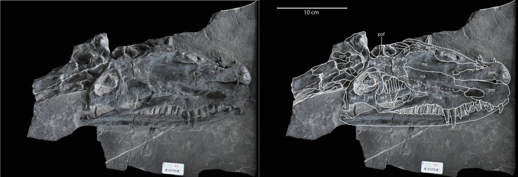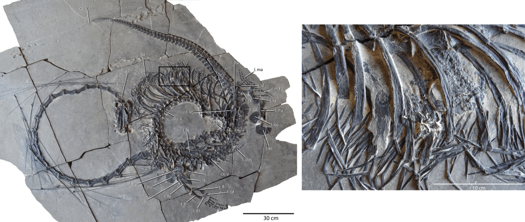 Références : Spiekman, S.N.F.; Wang, W.; Zhao, L.; Rieppel, O.; Fraser, N.C.; Li, C., 2024, Dinocephalosaurus orientalis Li, 2003: a remarkable marine archosauromorph from the Middle Triassic of southwestern China. Earth and Environmental Science Transactions of The Royal Society of Edinburgh.