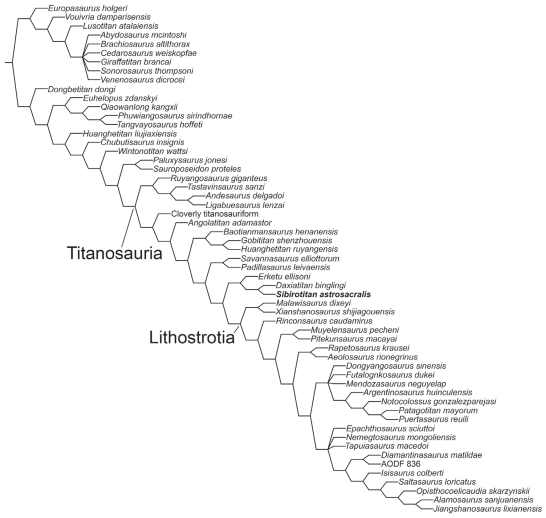 Sibirotitan est un genre de sauropode titanosauriforme décrit en 2018 par Averianov et ses collègues, avec S. astrosacralis pour espèce. Il est connu de nombreux restes désarticulés appartenant peut-être à un seul spécimen, découvert dans le Barrémien de la formation géologique d’Ilek (Kemerovo, Russie). Averianov et ses collègues décrivent ainsi un nouveau spécimen de Sibirotitan, provenant d’une autre localité que les autres restes connus de Sibirotitan, toujours en provenance du Barrémien de la formation géologique d’Ilek. Ils décrivent également une vertèbre de Sibirotitan provenant de la localité-type.