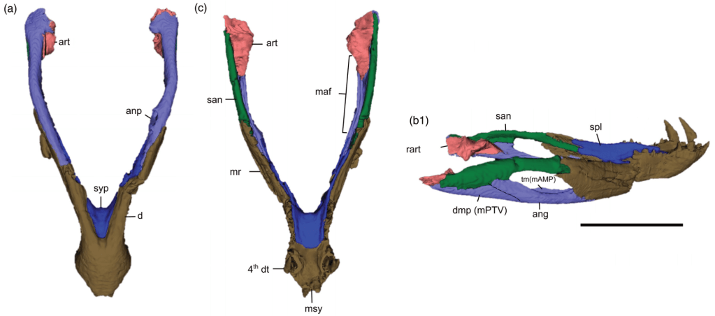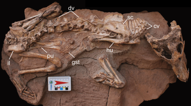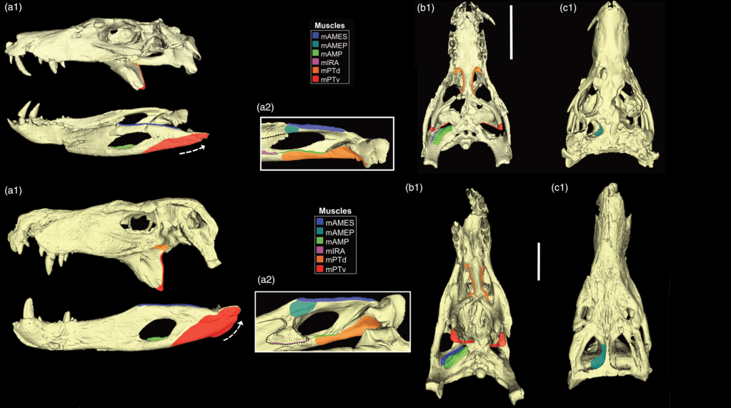 Références : Santos, D.M.; Carvalho, J.C.; Oliveira, C.E.M.; Andrade, M.B.; Santucci, R.M., 2024, Cranial and postcranial anatomy of a juvenile baurusuchid (Notosuchia, Crocodylomorpha) and the taxonomical implications of ontogeny. The Anatomical Record.
