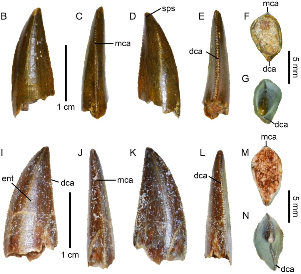 Les spécimens décrits par Hendrickx et ses collègues sont 11 dents isolées (BSPG 1993IX1E, BSPG 1993IX1G, BSPG 1993IX310A, BSPG 1993IX310B, BSPG 1993IX310C, BSPG 1993IX310E, BSPG 1993IX310F, BSPG 1993IX310H, BSPG 1993IX310J, BSPG 1993IX310 K et BSPG 1993IX310L), désignées sous le nom de Morphotype I. Elles ont été comparées à de nombreuses dents de théropodes dans des analyses morphologiques, morphométriques et phylogénétiques. Il en résulte que ces dents correspondent à des dents d’abelisauridés relativement basaux. Hendrickx et ses collègues les attribuent donc à Abelisauridae indet.