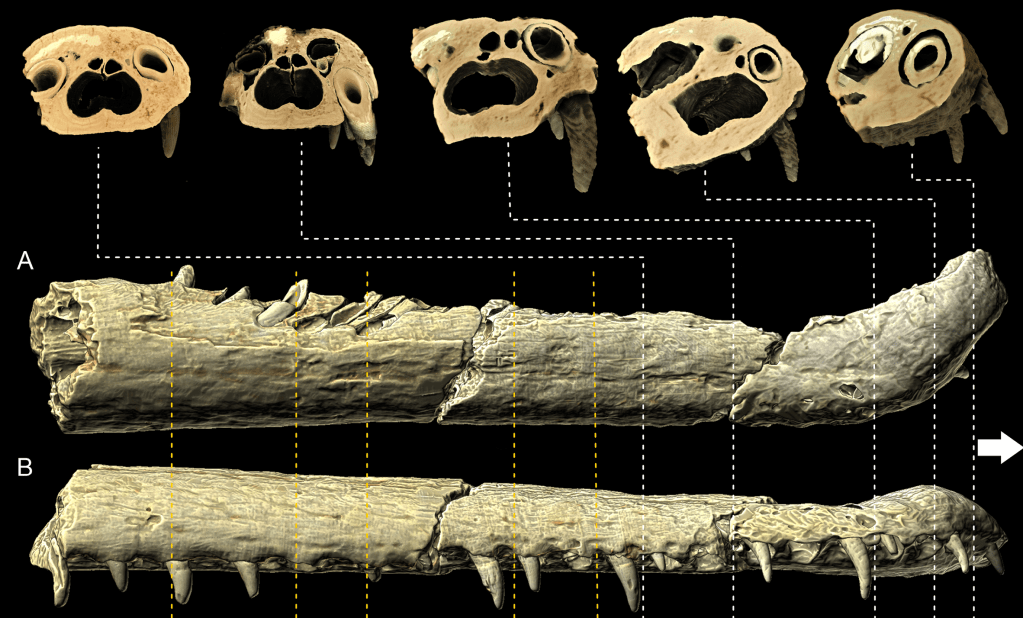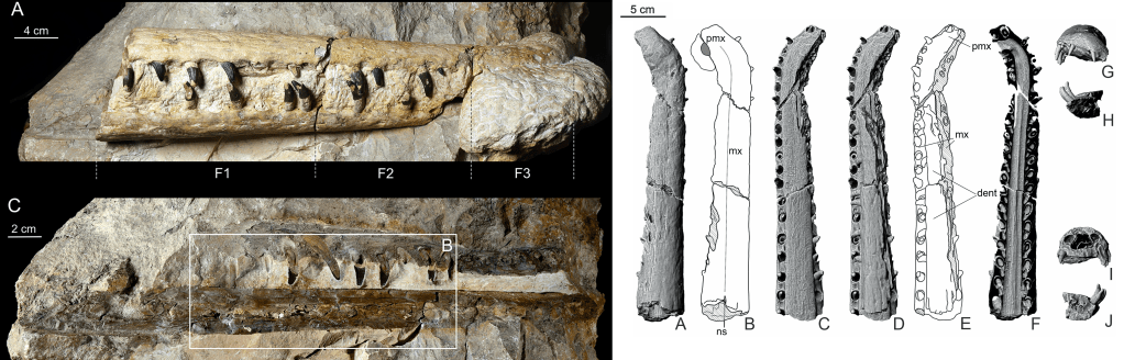 Références : Weryński, Ł.; Błażejowski, B.; Szczygielski, T.; Young, M.T., 2024, The first occurrence of machimosaurid crocodylomorphs from the Oxfordian of south-central Poland provides new insights into the distribution of macrophagous teleosauroids. PeerJ. 12: e17153.