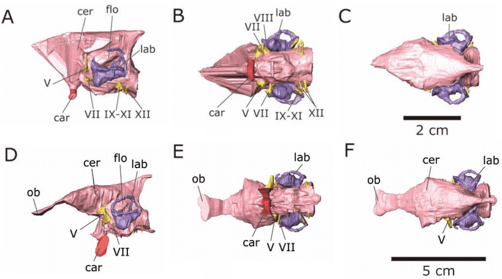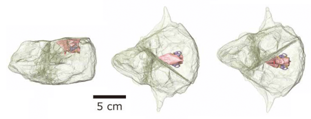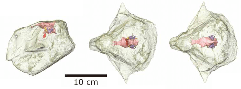 Référence : Sakagami, R.; Kawabe, S.; Hattori, S.; Zheng, W.; Jin, X., 2024, Endocranial anatomy of the ceratopsian dinosaur Psittacosaurus lujiatunensis and its bearing on sensory and locomotor abilities. Memoir of the Fukui Prefectural Dinosaur Museum. 22: 1-12.