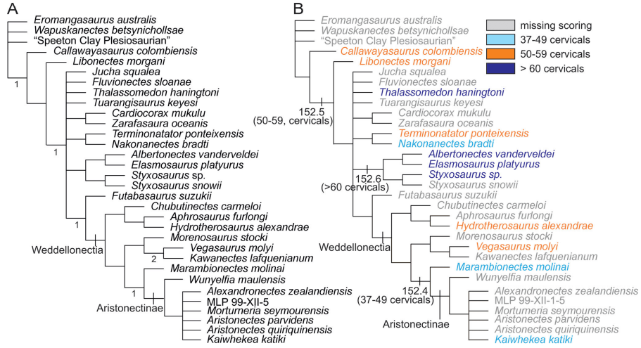 Référence : O’Gorman, J.P.; Canale, J.I.; Bona, P.; Tineo, D.E.; Reguero, M.; Cárdenas, M., 2024, A new elasmosaurid (Plesiosauria: Sauropterygia) from the López de Bertodano Formation: new data on the evolution of the aristonectine morphology. Journal of Systematic Palaeontology. 22: 1, 2312302.