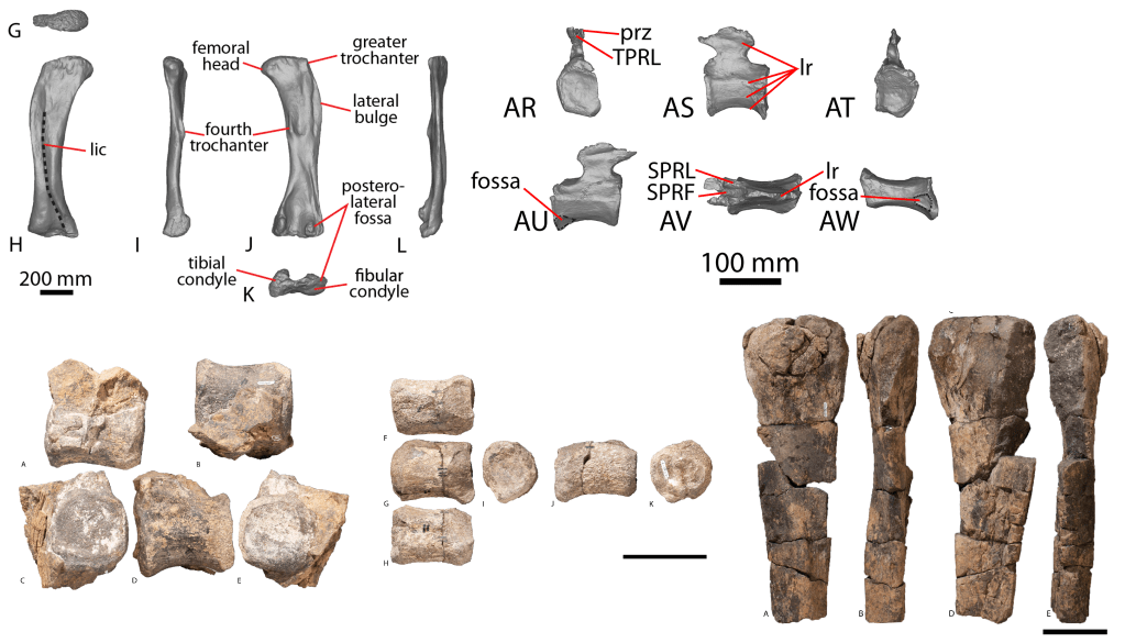 Références : Beeston, S.L.; Poropat, S.F.; Mannion, P.D.; Pentland, A.H.; Enchelmaier, M.J.; Sloan, T.; Elliott, D.A., 2024, Reappraisal of sauropod dinosaur diversity in the Upper Cretaceous Winton Formation of Queensland, Australia, through 3D digitisation and description of new specimens. PeerJ. 12: e17180.