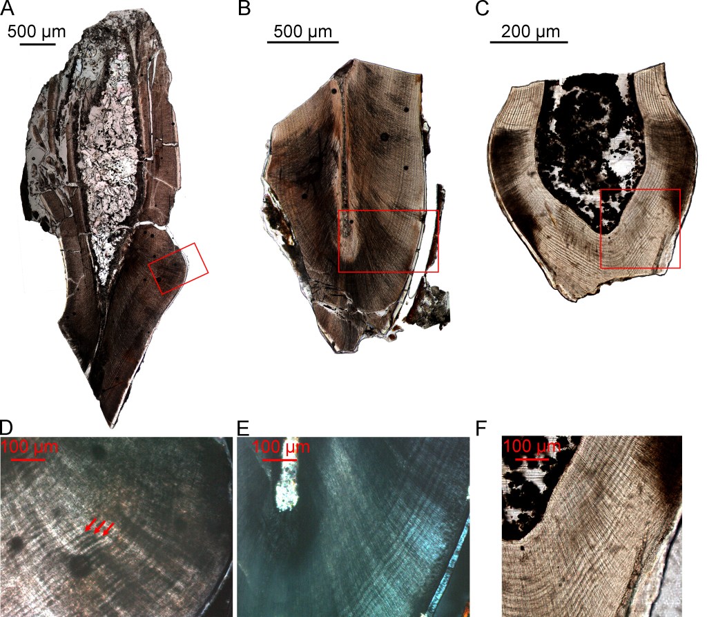 Pour estimer le temps de formation d’une dent de Jeholosaurus, Hu et ses collègues ont compté les lignes de von Ebner de deux dents de YLSNHM01797 et d’une dent de CUGW VH132. Les lignes de von Ebner sont les lignes de croissance de la dentine, permettant de calculer le temps de formation des dents. La dent prémaxillaire de YLSNHM01797 se forme en 33 jours et sa dent maxillaire en 33 jours. En revanche, la dent prémaxillaire de CUGW VH132 se forme en 25 jours.
