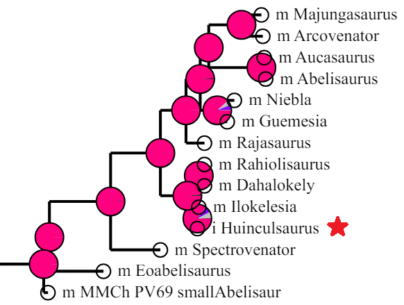 Enfin, Cau constate que plusieurs taxons basés sur des spécimens immatures sont synonymes de taxons basés sur des spécimens adultes. Le supposé noasauridé Huinculsaurus est en réalité un juvénile de l’abelisauridé Ilokelesia, ce qui synonymise Huinculsaurus à Ilokelesia. Le tyrannosauroidé Yutyrannus est ainsi synonyme de Dilong, Dilong représentant une forme juvénile et Yutyrannus une forme adulte. Enfin, il est possible que le tyrannosauroidé Tanycolagreus soit une forme immature de Stokesosaurus, et donc que Tanycolagreus soit synonymisé à Stokesosaurus.