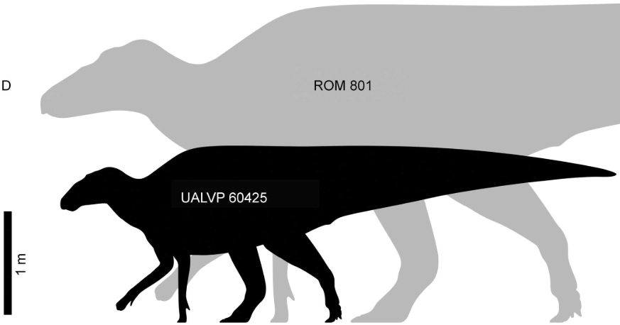 Le spécimen UALVP 60425 d’Edmontosaurus regalis mesurait environ 5 mètres de longueur, alors qu’un adulte de cette espèce mesure jusqu’à 12 mètres de longueur. Dans la formation géologique d’Horseshoe Canyon, Edmontosaurus cohabitait avec des squamates, des tortues, des crocodylomorphes, des ptérosaures, des pachycephalosaures, des ankylosaures, d’autres hadrosauridés, des cératopsiens, des tyrannosauridés, des ornithomimidés, des caenagnathidés, des troodontidés, des dromaeosauridés et des alvarezsauridés.