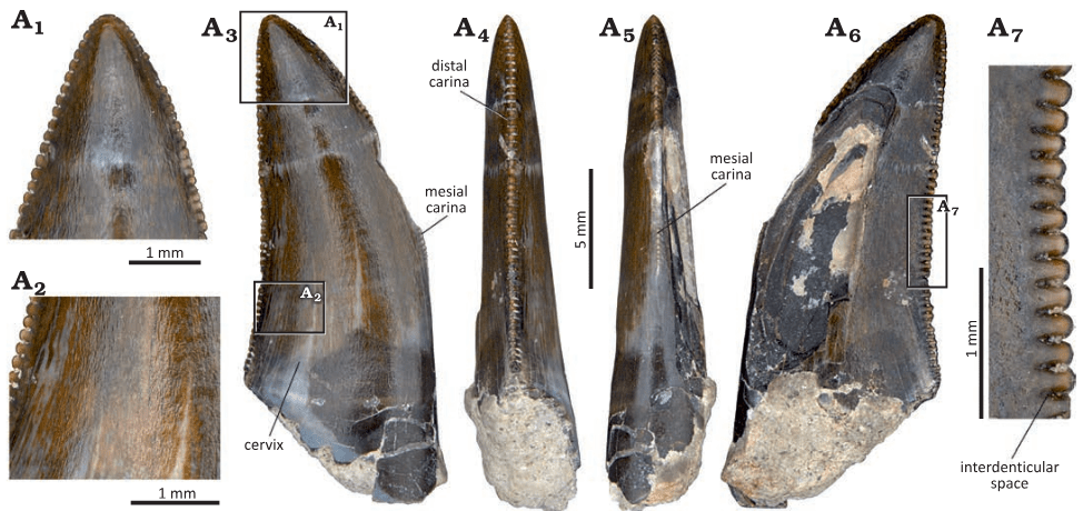 Références : Malafaia, E.; Mocho, P.; Escaso, F.; Narvaéz, I.; Ortega, F., 2024, Taxonomic and stratigraphic update of the material historically attributed to Megalosaurus from Portugal. Acta Palaeontologica Polonica. 69(2): 127-171.