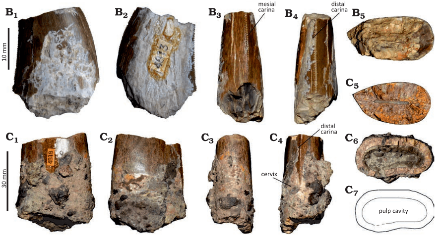 Malafaia et ses collègues ont réalisé des analyses phylogénétique et morphométrique afin d’identifier les dents MG 4813, MG 4818, MNHN/UL.EPt.023 et MNHN/UL.EPt.8628. Ils constatent que MNHN/UL.EPt.023 est une dent de megalosauridé impossible à attribuer au niveau du genre. MG 4813, MG 4818 et MNHN/UL.EPt.8628 sont quant à elles des dents typiques de Torvosaurus gurneyi. Malafaia et ses collègues ont donc référé MNHN/ UL.EPt.023 à Megalosauridae indet. et MG 4813, MG 4818 et MNHN/UL.EPt.8628 à cf. Torvosaurus gurneyi. Il est toutefois fort probable que MNHN/UL.EPt.023 représente aussi T. gurneyi.