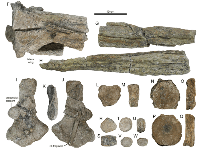 Les nouveaux spécimens d’Ophthalmosaurus icenicus décrits par Zverkov et ses collègues comprennent un squelette partiel (SGM 1961) du Callovien de l’oblast de Yaroslavl (Russie), un membre antérieur partiel (PIN R-4956) du Callovien de la formation géologique de Chulkovo (Riazan, Russie) et un prémaxillaire isolé (SGM 2000-1) du Callovien de la formation géologique de Kologriv (Kostroma, Russie). Le squelette SGM 1961 comprend des fragments de crâne, de nombreuses vertèbres, des éléments de la ceinture pectorale et des membres.