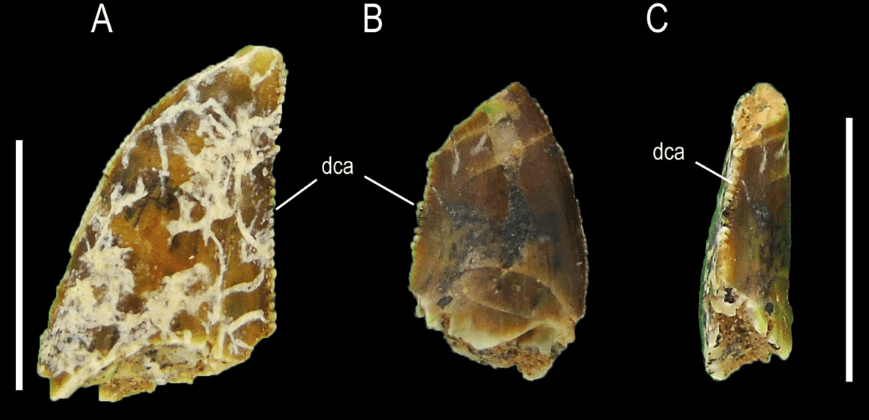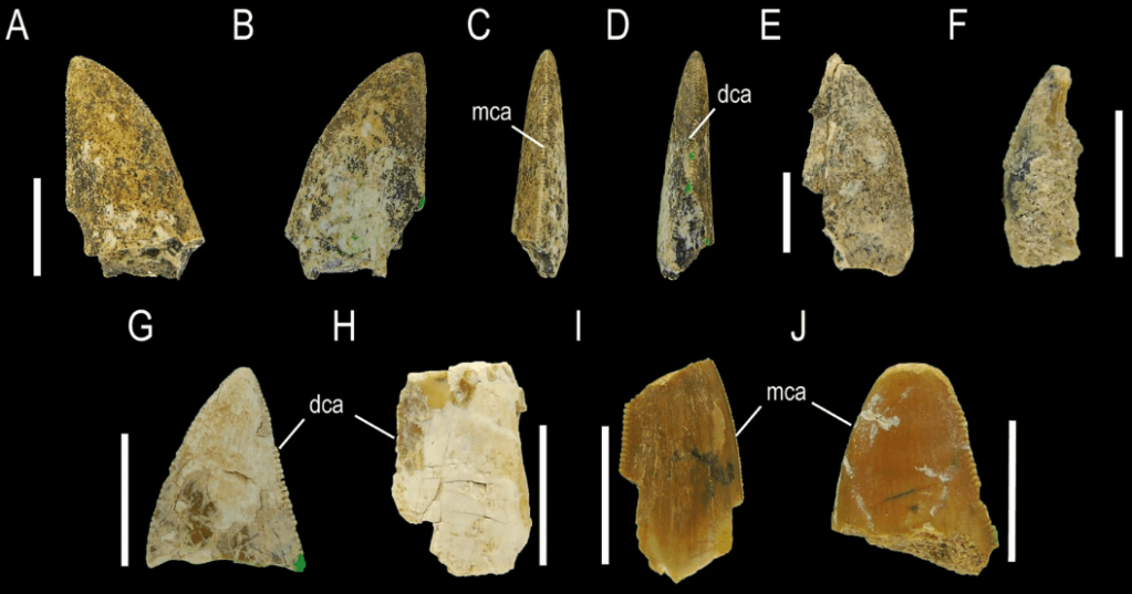 Référence : Meso, J.G.; Gianechini, F.; Gomez, K.L.; Muci, L.; Baiano, M.A.; Pol, D.; Kaluza, J.; Garrido, A.; Pittman, M., 2024, Shed teeth from Portezuelo formation at Sierra del Portezuelo reveal a higher diversity of predator theropods during Turonian-Coniacian times in northern Patagonia. BMC Ecology and Evolution. 24: 59.