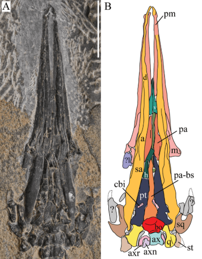 Références : Liu, J.; Wu, F.; Qiao, Y., 2024, A new basal hupehsuchian from the Early Triassic of South China and its implication to the phylogenetic relationships of Ichthyosauromorpha (Reptilia: Diapsida). Historical Biology.