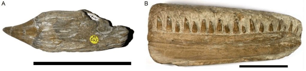 Les spécimens attribués à Temnodontosaurus eurycephalus décrits par Massare et ses collègues comprennent une dent isolée (BRLSI M0647) et un fragment antérieur d’une mandibule (BRLSI M4795). Bien que ces deux spécimens soient très isolés et incomplets, leur identification en tant que T. eurycephalus est permise grâce à la dentition très caractéristique de cette espèce.