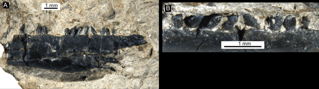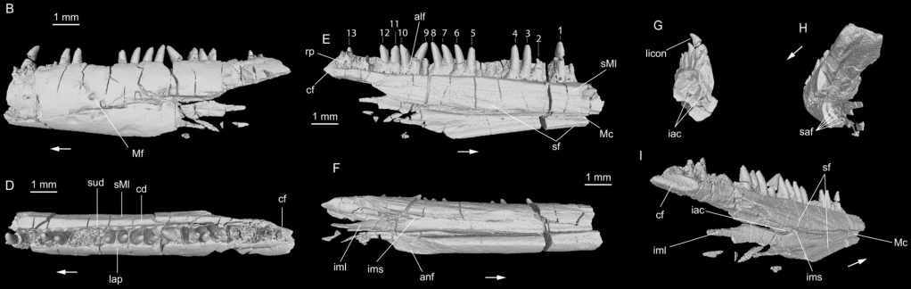 Références : Kligman, B.T.; Sues, H.-D.; Melstrom, K.M., 2024, A new lizard-like reptile with unusual mandibular neurovasculature from the Upper Triassic of Virginia. Journal of Vertebrate Paleontology. 44: e2353636.