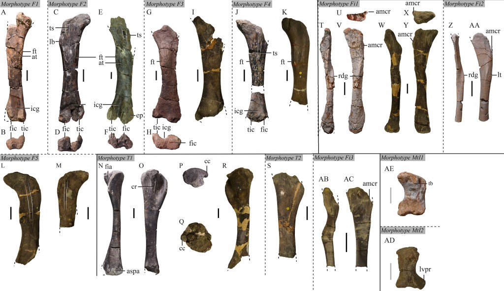 Les titanosaures sont un groupe de dinosaures sauropodes vivant au crétacé sur l’ensemble du globe. Dans le crétacé supérieur de Roumanie, ils sont représentés par les genres Magyarosaurus et Paludititan, chacun monospécifiques avec M. dacus et P. nalatzensis. En plus de ces genres, il existe le taxon douteux « Magyarosaurus » hungaricus ainsi que de nombreux restes fragmentaires qui ne peuvent être attribués qu’à Titanosauria indet. Mocho et ses collègues décrivent ainsi de nombreux nouveaux éléments appendiculaires isolés de titanosaures du Maastrichtien de Roumanie.