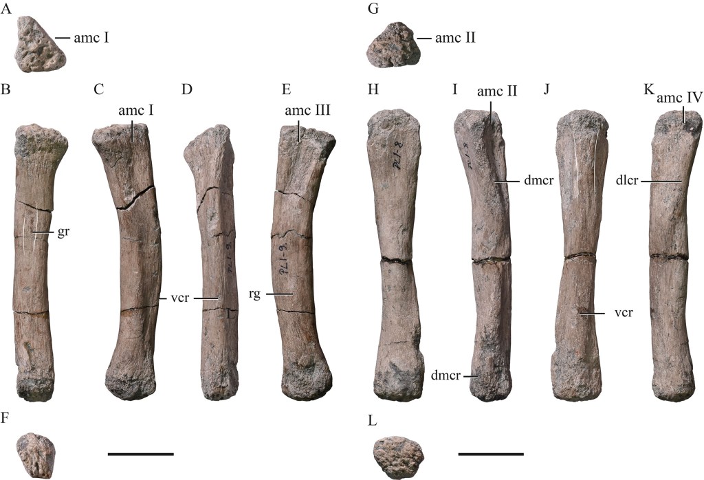 Références : Mocho, P.; Pérez-García, A.; Codrea, V.A., 2024, New sauropod appendicular remains from the Upper Cretaceous of Romania: accessing the morphological variability. Cretaceous Research. 105936.