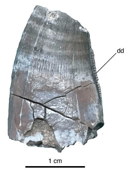 Référence : Porfiri, J.D.; Baiano, M.A.; dos Santos, D.D.; Gianechini, F.A.; Pittman, M.; Lamanna, M.C., 2024, Diuqin lechiguanae gen. et sp. nov., a new unenlagiine (Theropoda: Paraves) from the Bajo de la Carpa Formation (Neuquén Group, Upper Cretaceous) of Neuquén Province, Patagonia, Argentina. BMC Ecology and Evolution. 24: 77.