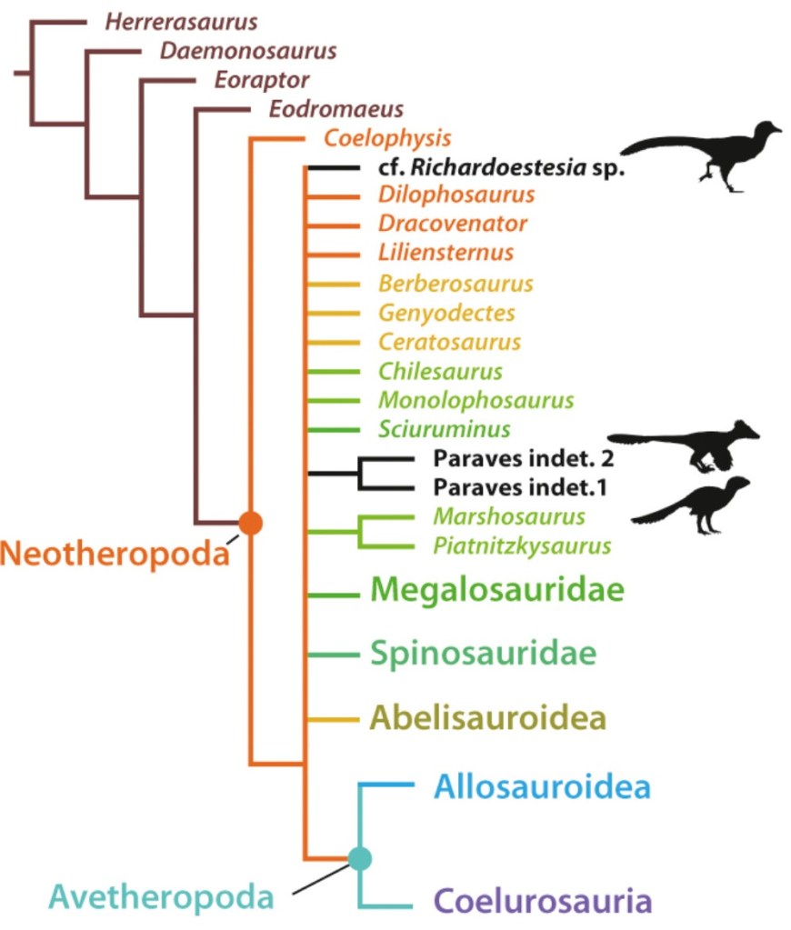 Les théropodes sont un groupe de dinosaures qui inclut la quasi-totalité des dinosaures prédateurs ainsi que les oiseaux. Dans le Maastrichtien de la formation géologique de Tremp (Lleida, Espagne), la faune de théropodes comprend des théropodes indéterminés (y compris les genres Richardoestesia et Paronychodon), des abelisauridés, des troodontidés et des dromaeosauridés. Isasmendi et ses collègues décrivent ainsi de nouvelles dents de théropodes de la formation géologique de Tremp. Ils décrivent notamment des dents de Richardoestesia (voir cet article), de Paronychodon (voir cet article), d’abelisauridés (voir cet article) et de dromaeosauridés (voir cet article).