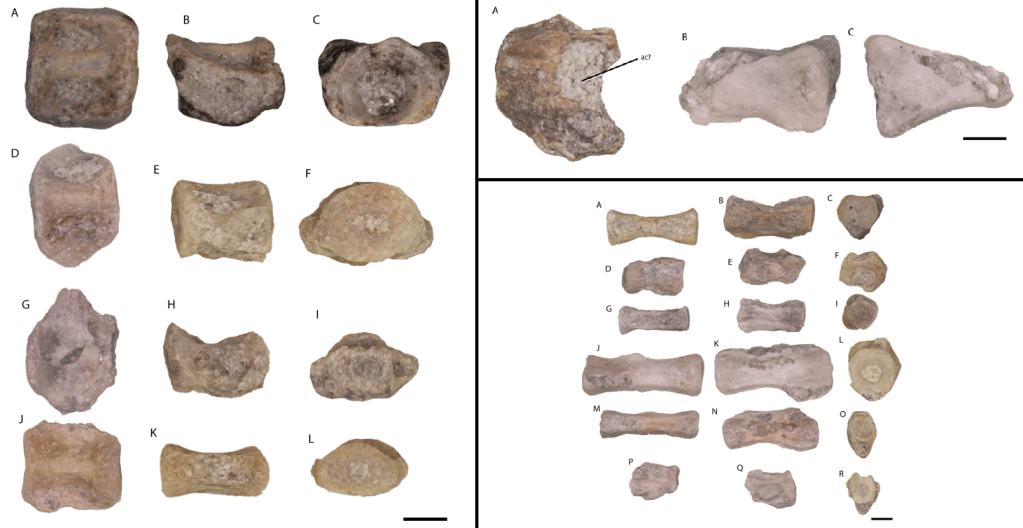 Pugh et ses collègues décrivent également des vertèbres ne pouvant pas être assignés à l’un des deux taxons du site de Homestead, car ces taxons ne sont connus que des unguéaux manuels II. Ces spécimens sont deux fragments de vertèbres cervicales (LF 5357 et LF 5373), quatre fragments de vertèbres dorsales (LF 5356, LF 5365, LF 5366 et LF 5367) et neuf fragments de vertèbres caudales (LF 5355, LF 5368, LF 5369, LF 5370, LF 5371, LF 5372, LF 5581, LF 5582 et LF 5583). Pugh et ses collègues assignent donc ces vertèbres à Drepanosauridae indet.
