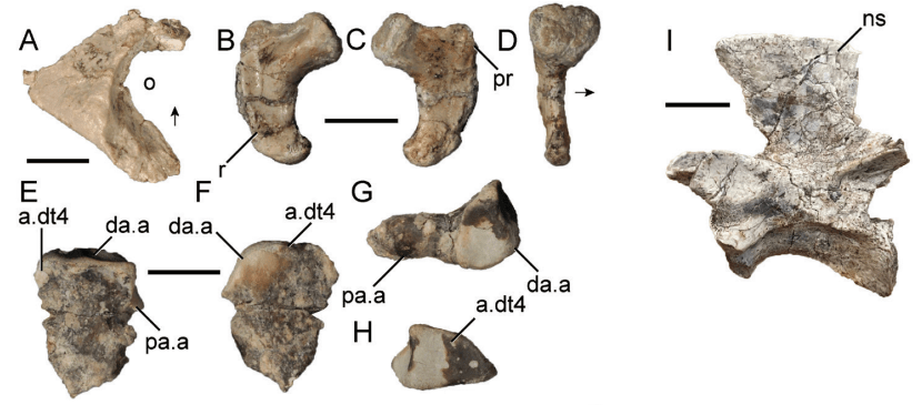 Les spécimens décrits par Marsh et ses collègues comprennent tout d’abord de nouveaux spécimens de Trilophosaurus phasmalophos (voir cet article). Ils comprennent également un postorbital droit (PEFO 39521), un métatarsien V droit (PEFO 54629), un calcanéum gauche partiel (PEFO 39554), une vertèbre cervicale (PEFO 47371) et cinq vertèbres cervicales articulées (PEFO 54931). Ces spécimens appartiennent soit à Spinosuchus soit à Trilophosaurus, mais il est impossible de le savoir sur la base de ce matériel. Marsh et ses collègues assignent donc ces éléments à Trilophosauridae indet.