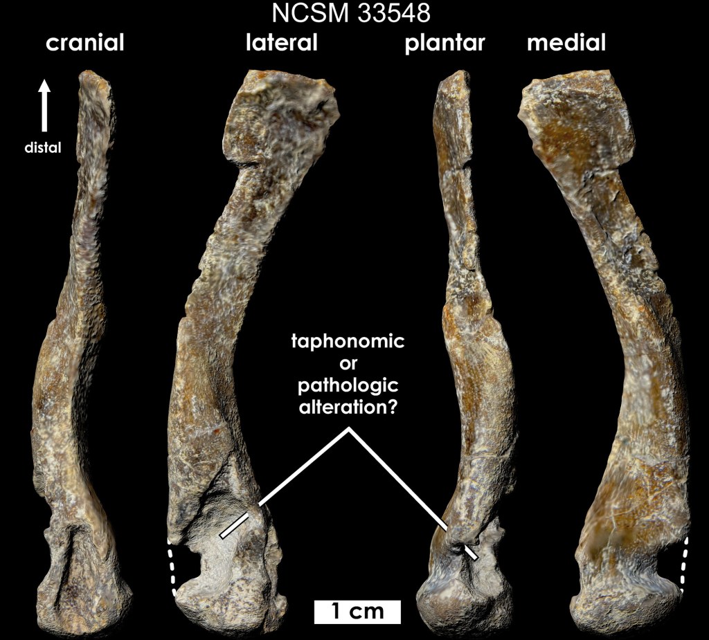 Avrahami et ses collègues remarquent que le métatarsien I gauche de l’holotype (NCSM 33548) de Fona herzogae présente une grosse perforation concave et irrégulière au niveau de son extrémité proximale. La fibula NCSM 36265 de l’association de spécimens du site de Mini Troll présente un renflement proéminent au niveau de sa diaphyse. Ces anomalies peuvent être liées à des pathologies ou bien causées par la taphonomie. Seules des études plus détaillées sur ces spécimens permettront d’en savoir plus.