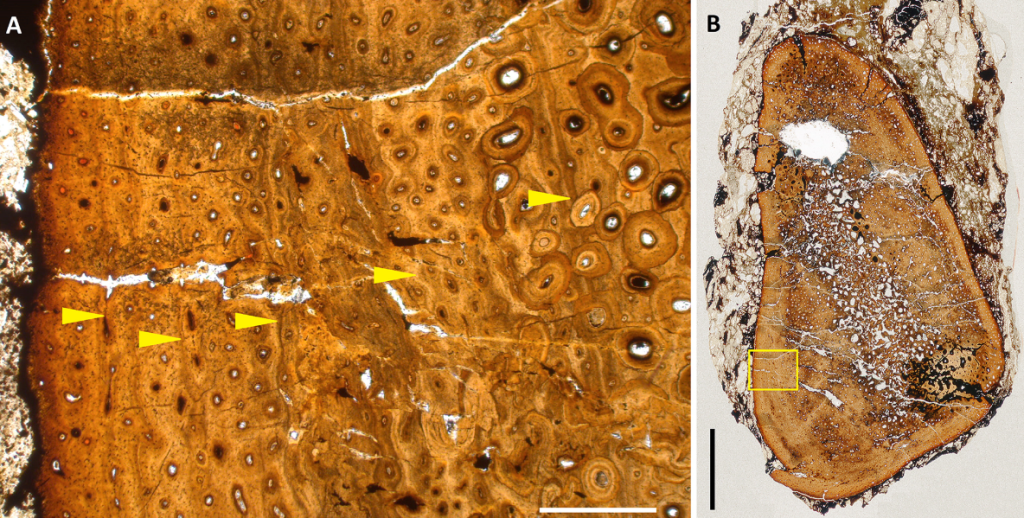 Lockwood et ses collègues ont réalisé une analyse ostéohistologique de l’holotype (IWCMS 2014.80) de Comptonatus chasei, en effectuant des coupes histologiques sur deux fragments de côtes dorsales. Ces coupes leur permettent d’identifier 5 lignes d’arrêt de croissance, des signes d’un remodelage osseux intensif et d’une croissance en cours de ralentissement. Les lignes d’arrêt de croissance les plus anciennes ont donc été effacées par le remodelage osseux et le spécimen était proche d’atteindre sa taille adulte. IWCMS 2014.80 était donc un individu subadulte âgé d’un minimum de 5 ans (mais probablement bien plus) à sa mort.