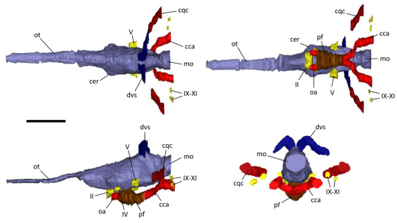 Bowman, C.I.W.; Young, M.T.; Schwab, J.A.; Walsh, S.; Witmer, L.M.; Herrera, Y.; Dollman, K.N.; Choiniere, J.N.; Brusatte, S.L., 2022, Rostral neurovasculature indicates sensory trade-offs in Mesozoic pelagic crocodylomorphs. The Anatomical Record. 305: 2654-2669.