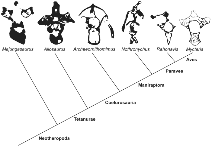 La pneumatisation du squelette s’observe chez les ptérosaures, les sauropodomorphes et les théropodes, et consiste en la présence d’espaces vides dans les os du squelette postcrânien. Elle aurait notamment permis l’allègement du squelette et le passage d’un système de sacs aériens pour la respiration. Majungasaurus et Rahonavis sont deux théropodes découverts dans le Maastrichtien de la formation géologique de Maeverano (Mahajanga, Madagascar). Majungasaurus est un abelisauridé dérivé alors que Rahonavis est un dromaeosauridé unenlagiiné. Aureliano et ses collègues analysent ainsi l’évolution de la pneumatisation des théropodes en étudiant Majungasaurus et Rahonavis.