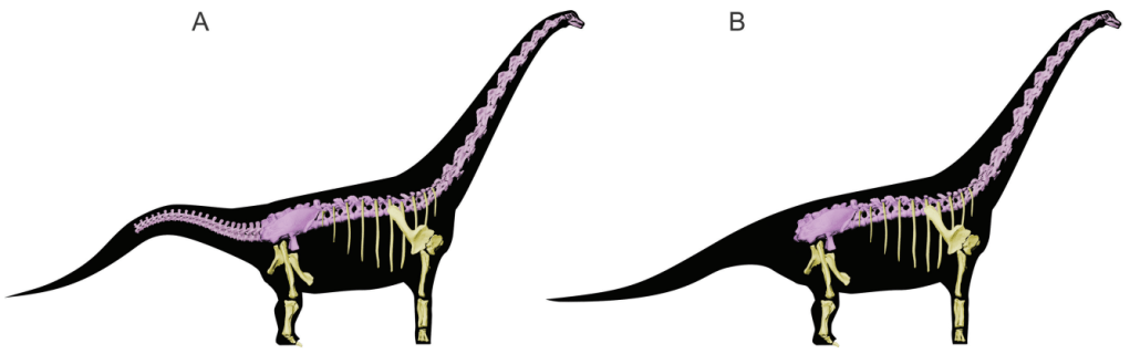Références : Vidal, L.S.; Bergqvist, L.P.; Candeiro, C.R.A; Bandeira, K.L.N.; Tavares, S.; Brusatte, S.L.; Pereira, P.V.L.G.C., 2024, The axial biomechanics of Trigonosaurus pricei (Neosauropoda: Titanosauria) and the importance of the cervical–dorsal region to sauropod high-browser feeding strategy. Zoological Journal of the Linnean Society. 201: zlae087.