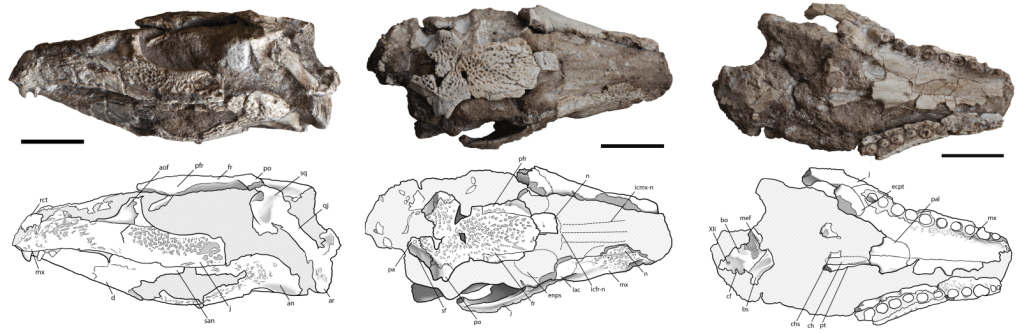 Références : Fernandez Dumont, M.L.; Pol, D.; Bona, P.; Apesteguía, S., 2024, A new species of Araripesuchus with durophagous dentition increases the ecological disparity among uruguaysuchid crocodyliforms. Journal of Systematic Palaeontology. 22(1): 2373987.