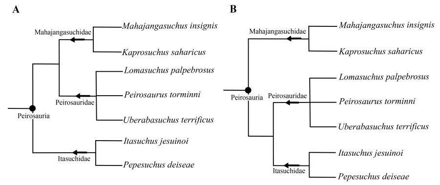 Leardi et ses collègues créent Peirosauria comme étant un clade contenant les familles Mahajangasuchidae, Itasuchidae et Peirosauridae. Selon les phylogénies, Peirosauria se retrouve en groupe-soeur d’Uruguaysuchidae, ou bien en groupe-soeur de Sebecosuchia. Au sein même de Peirosauria, les phylogénies placent soit Itasuchidae soit Mahajangasuchidae en groupe le plus basal.