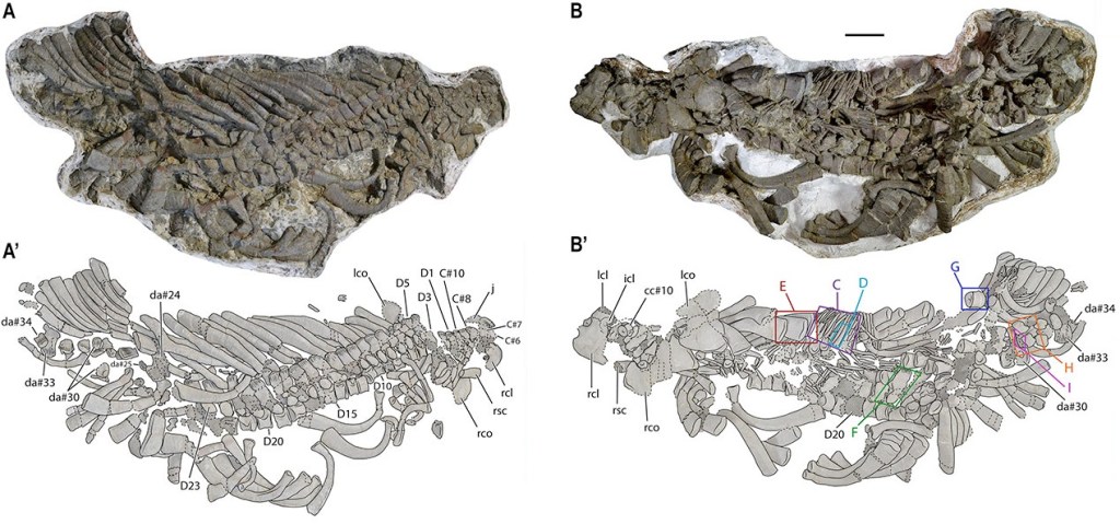 Références : Cabezuelo-Hernández, A.; De Miguel Chaves, C.; Ortega, F.; Pérez-García, A., 2024, Postcranial anatomy of the Spanish Upper Triassic sauropterygian Paludidraco multidentatus (Simosauridae). Palaeontologia Electronica. 27(2): a40.