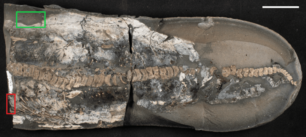 Référence : Bonnevier Wallstedt, I.; Sjövall, P.; Thuy, B.; De La Garza, R. G.; Eriksson, M. E.; Lindgren, J., 2024, Skin Anatomy, Bone Histology and Taphonomy of a Toarcian (Lower Jurassic) Ichthyosaur (Reptilia: Ichthyopterygia) from Luxembourg, with Implications for Paleobiology. Diversity. 16(8): 492.