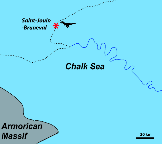 Référence : Buffetaut, E.; Tong, H.; Girard, J.; Hoyez, B.; Párraga, J., 2024, Caletodraco cottardi: A New Furileusaurian Abelisaurid (Dinosauria: Theropoda) from the Cenomanian Chalk of Normandy (North-Western France). Fossil Studies. 2(3): 177-195.