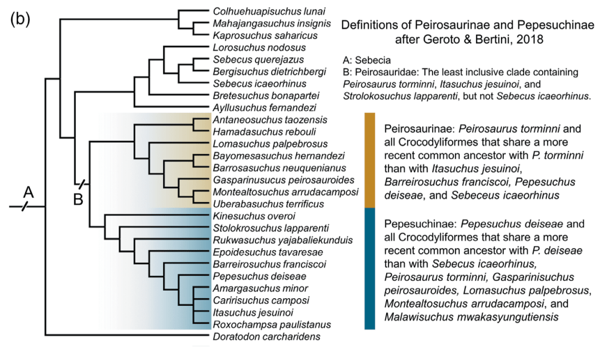 Références : Ruiz, J.V.; Queiroz, M.V.L.; Martins, K.C.; Godoy, P.L.; Iori, F.V.; Langer, M.C.; Montefeltro, F.C.; Bronzati, M., 2024, A new Peirosauridae (Crocodyliformes, Notosuchia) from the Adamantina Formation (Bauru Group, Late Cretaceous), with a revised phylogenetic analysis of Sebecia. The Anatomical Record.