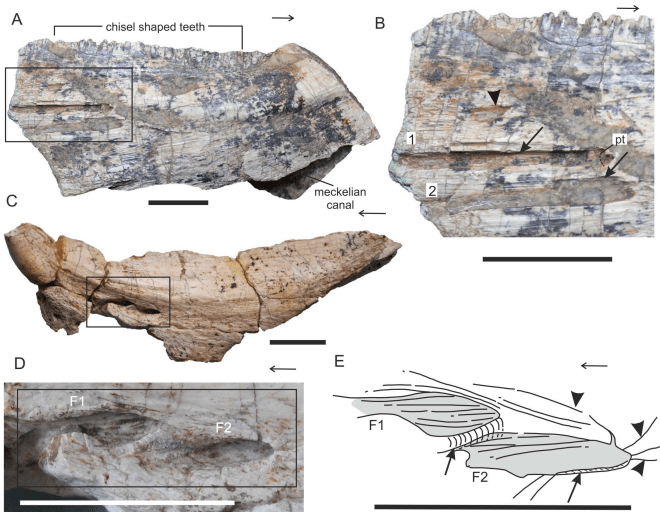 Hyperodapedon est un genre d’archosauromorphe rhynchosaure rhynchosauridé connu de six espèces : H. gordoni (l’espèce-type), H. huenei, H. huxleyi, H. mariensis, H. sanjuanensis et H. tikiensis. A noter qu’une étude récente menée en 2023 par Fitch et ses collègues (voir cet article) a mis en évidence la possibilité que le genre Hyperodapedon se limite à son espèce-type H. gordoni, et que les autres espèces représentent chacune un genre distinct. Dans le Norien de la formation géologique de Maleri (Telangana, Inde), H. huxleyi est la seule espèce représentée d’Hyperodapedon. Chakraborty et ses collègues décrivent ainsi de nouveaux spécimens pathologiques d’Hyperodapedon de la formation géologique de Maleri.
