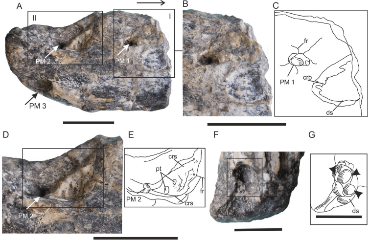 Références : Chakraborty, U.; Mukherjee, D.; Ray, S., 2024, Assessing predator–prey interactions during the Late Triassic of India from bite marks on Hyperodapedon (Archosauromorpha, Rhynchosauria). Journal of Vertebrate Paleontology. e2383735.