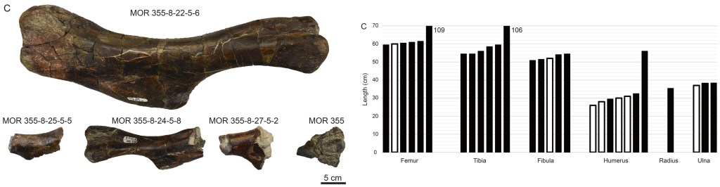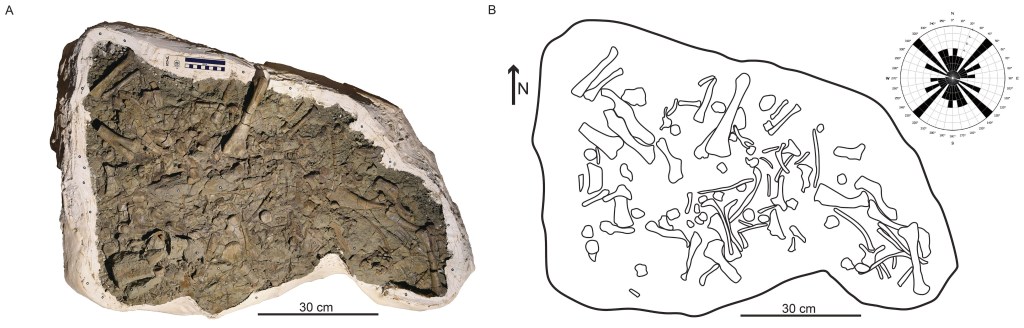 Référence : Joubarne, T.; Therrien, F.; Zelenitsky, D.K., 2024, Evidence of age segregation behavior in Hypacrosaurus stebingeri (Hadrosauridae: Lambeosaurinae) based on the taphonomic comparison of bonebeds from the Upper Cretaceous (upper Campanian) Oldman Formation of southernmost Alberta (Canada) and Two Medicine Formation of Montana (USA). Palaeogeography, Palaeoclimatology, Palaeoecology. 653: 112416.