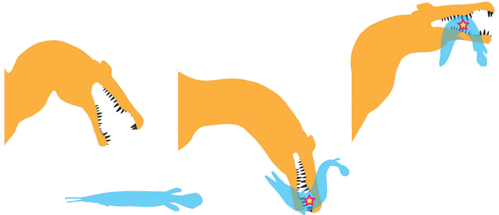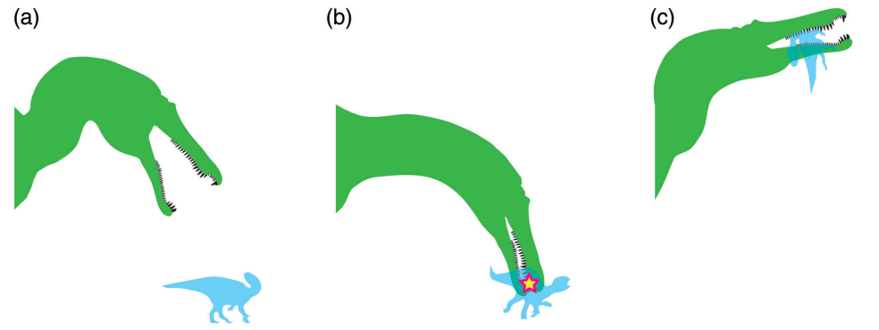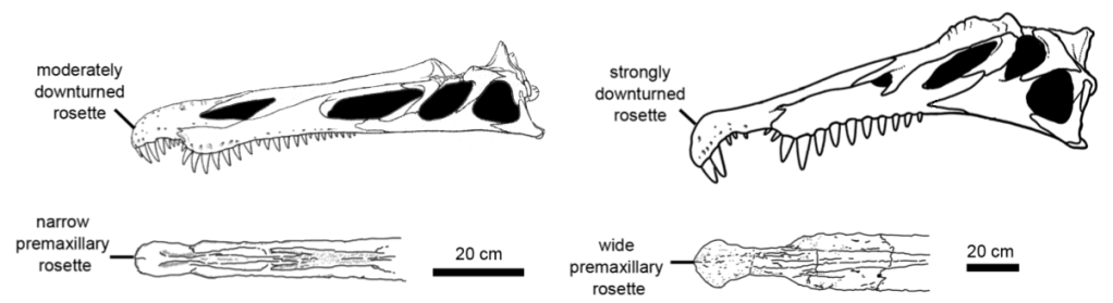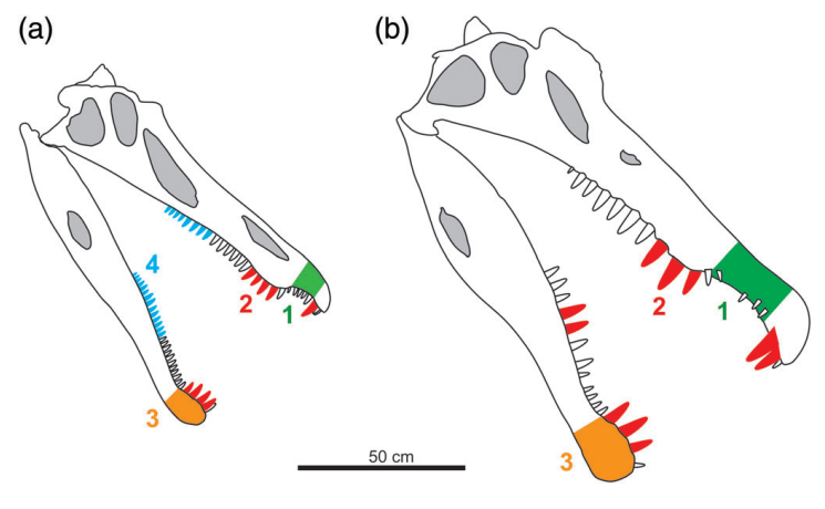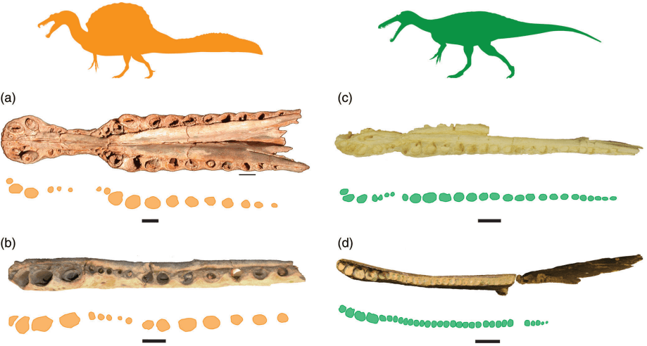 Références : D’Amore, D.C.; Johnson-Ransom, E.; Snively, E.; Hone, D.W.E., 2024, Prey size and ecological separation in spinosaurid theropods based on heterodonty and rostrum shape. The Anatomical Record.