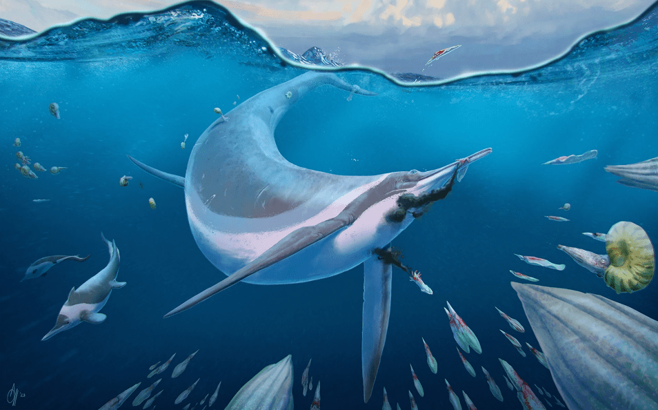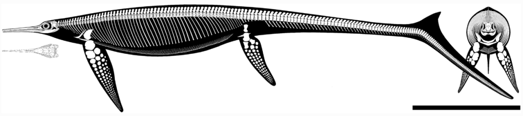 Références : Bindellini, G.; Wolniewicz, A.S.; Miedema, F.; Dal Sasso, C.; Scheyer, T.M., 2024, Postcranial anatomy of Besanosaurus leptorhynchus (Reptilia: Ichthyosauria) from the Middle Triassic Besano Formation of Monte San Giorgio (Italy/Switzerland), with implications for reconstructing the swimming styles of Triassic ichthyosaurs. Swiss Journal of Palaeontology. 143(1): 32.