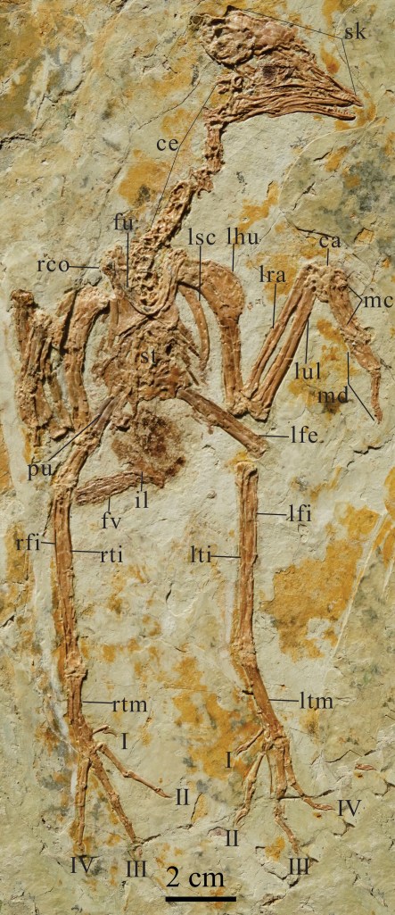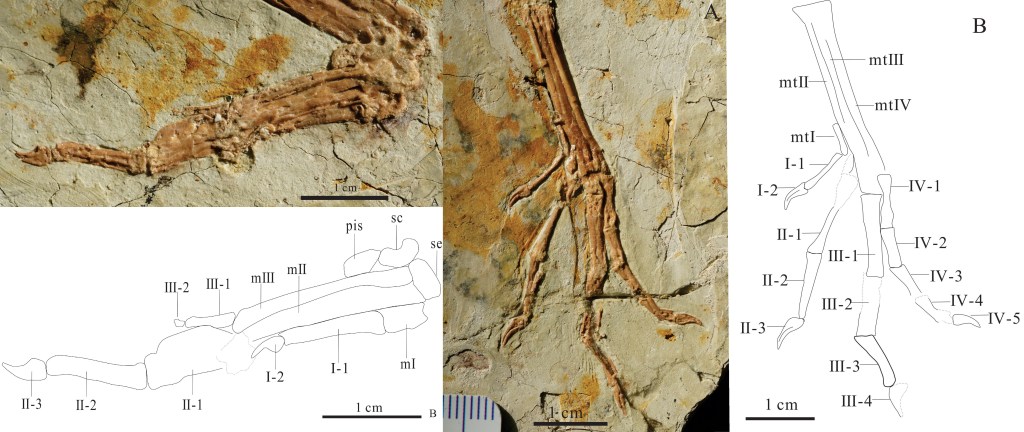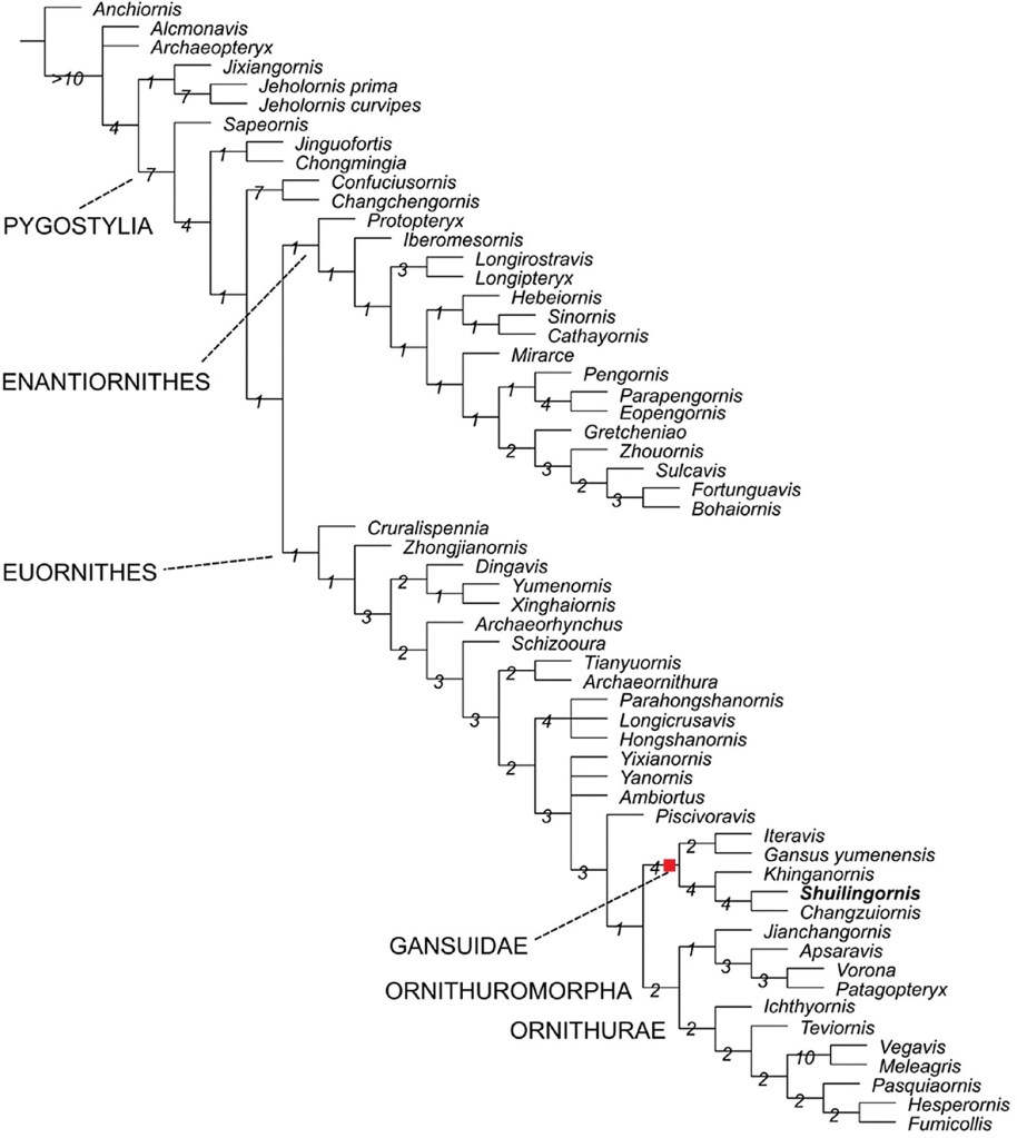Référence : Wang, X.; Cau, A.; Wang, Y.; Kundrát, M.; Zhang, G.; Liu, Y.; Chiappe, L.M., 2024, A new gansuid bird (Avialae, Euornithes) from the Lower Cretaceous (Aptian) Jiufotang Formation of Jianchang, western Liaoning, China. Cretaceous Research. 106014.