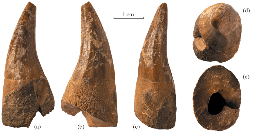 Référence : Grigoriev, D.V.; Zverkov, N.G.; Nikiforov, A.V., 2024, Mosasaurs (Squamata: Mosasauridae) from the Upper Cretaceous of the Southern Urals. Paleontological Journal. 58(4): 457-474.