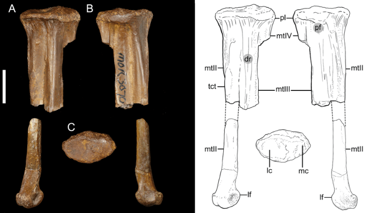 Références : Clark, A.D.; Atterholt, J.; Scannella, J.B.; Carroll, N.; O’Connor, J.K., 2024, New enantiornithine diversity in the Hell Creek Formation and the functional morphology of the avisaurid tarsometatarsus. PLoS ONE. 19(10): e0310686.