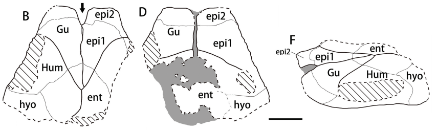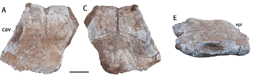 Référence : Ke, Y.; Tong, H.; Qiu, W.; Shi, Z.; Han, F., 2024, A partial plastron of Nanhsiungchelys (Testudines: Cryptodira: Nanhsiungchelyidae) from the Upper Cretaceous of Ganzhou Basin, China. Historical Biology.
